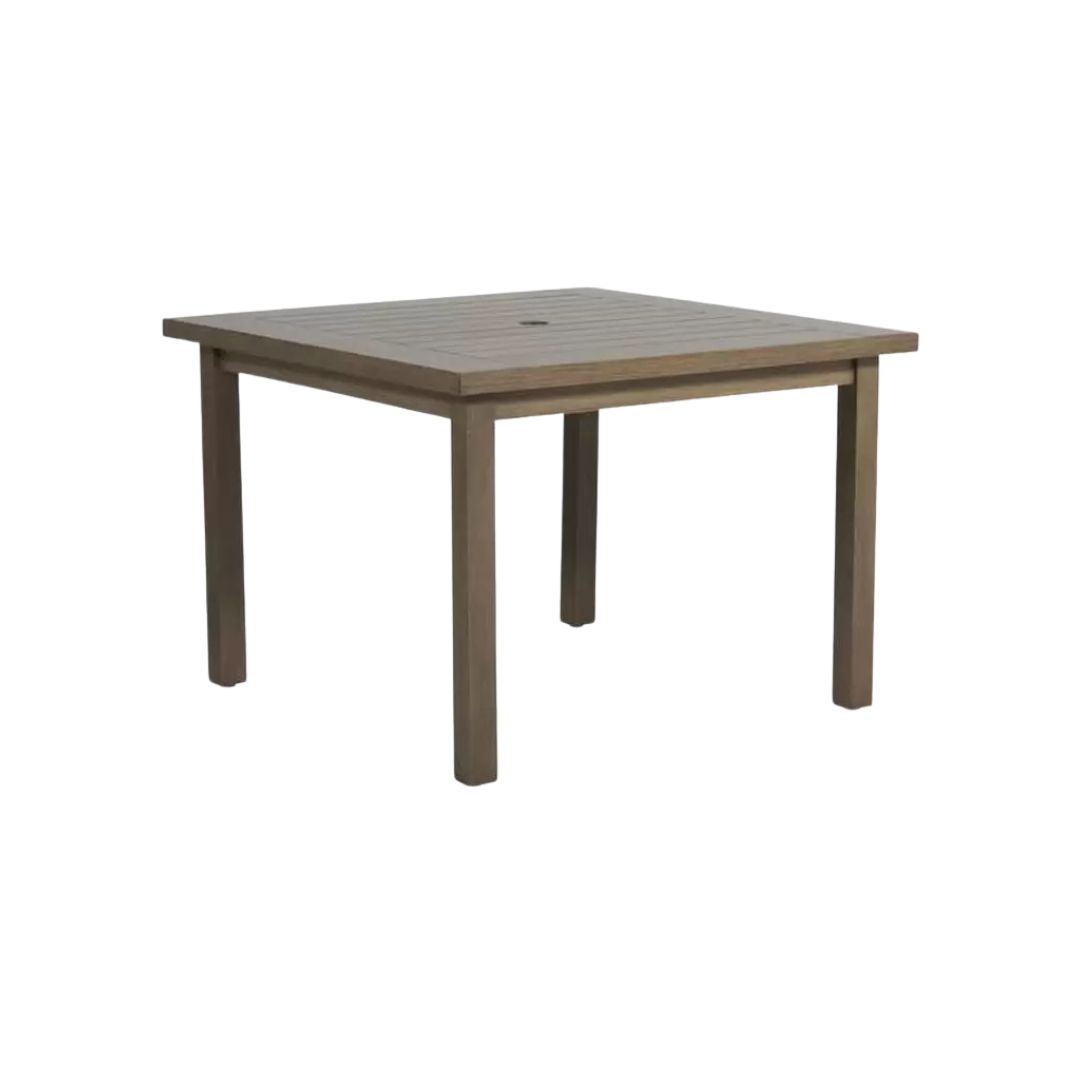 The Club Aluminum Square Dining Table features a classic style that mixes with an array of outdoor looks. Handcrafted from sturdy wrought aluminum with a UV-resistant powder-coated finish, this versatile table is built to withstand the elements. Wrought aluminum construction and an exceptionally UV-resistant powder-coated finish guarantee years of beauty and enjoyment.