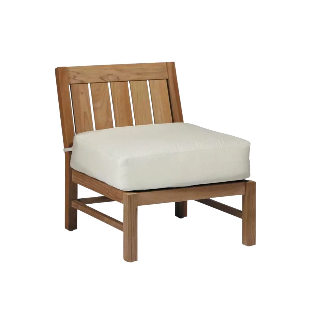 Summer Classics offers outdoor sectional seating designed to fit any space. The Club Teak Sectional Slipper Chair combines with other pieces in the collection to form a loveseat or sofa; or use the slipper chair for comfortable stand-alone seating. Constructed from sturdy, marine-grade teak, these furnishings will last for years of enjoyment.