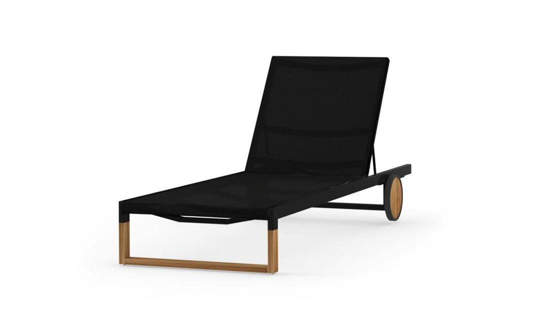 With a teak and powder coated aluminum frame, and signature ‘EKKA lounger’ oversized wheels, this is stunningly practical design lounger. Combined with body-supporting, comfy Batyline® or Twitchell® Textilene sling ; no cushion is necessary.