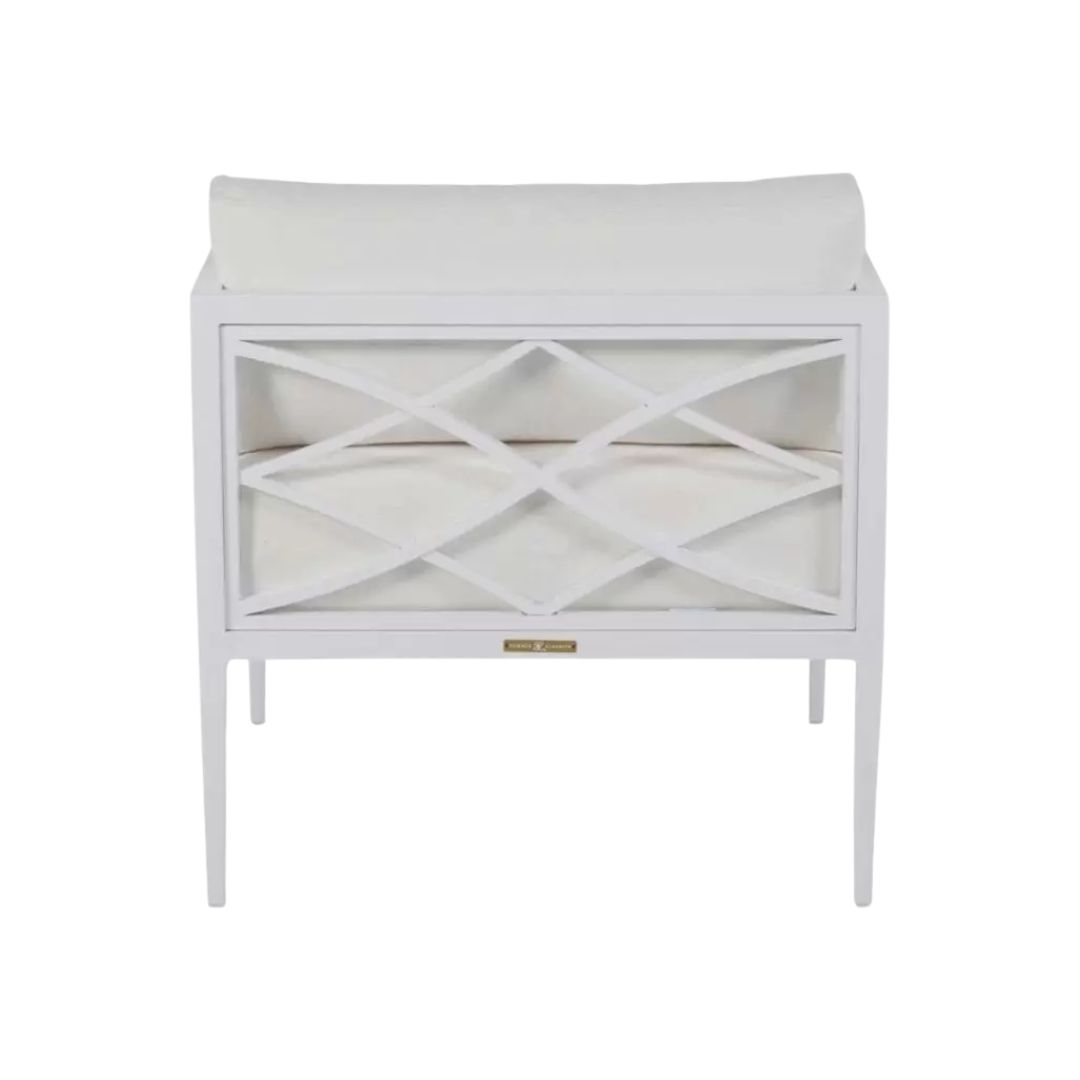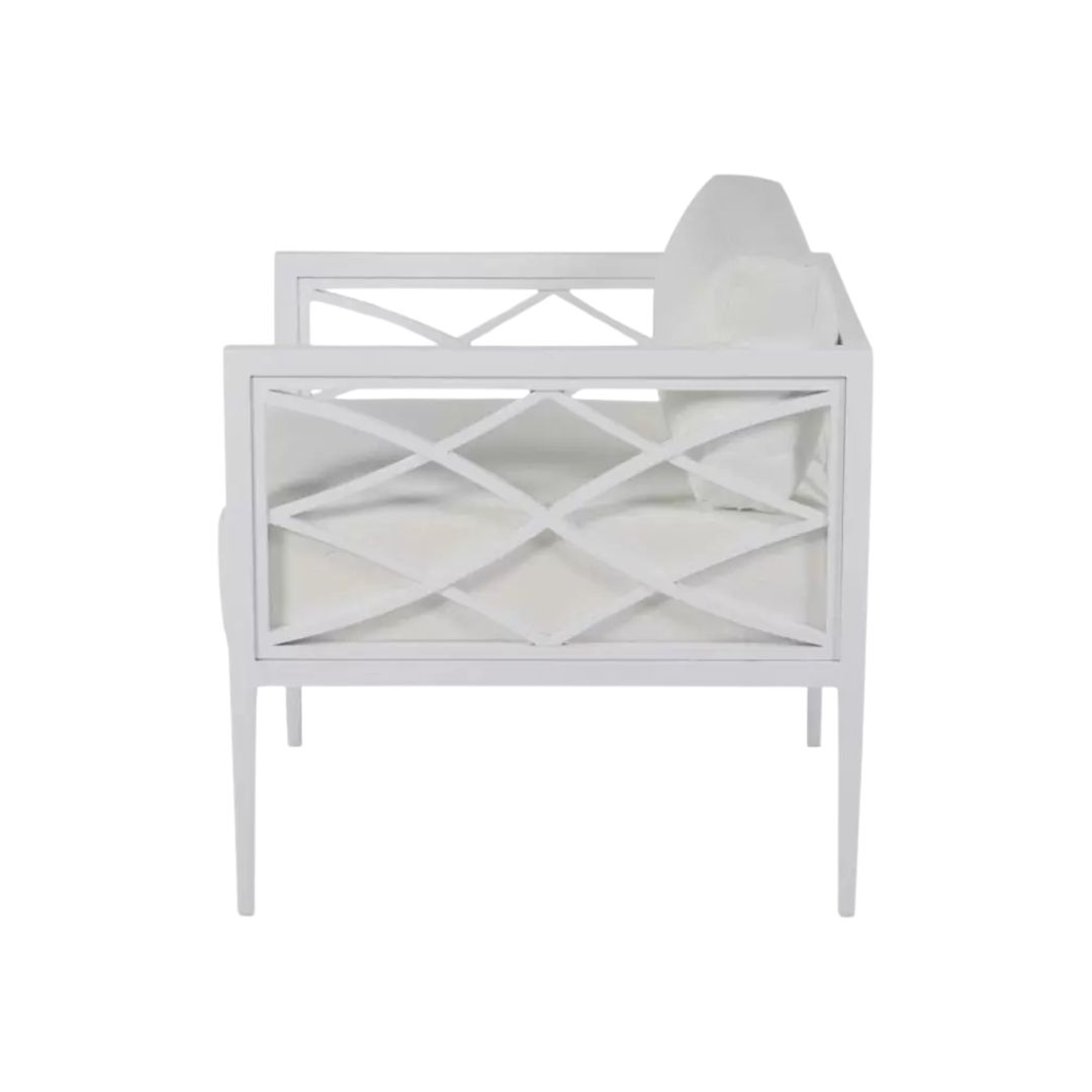A modern take on European garden furniture, the Elegante collection is influenced by linear silhouettes and contemporary latticework. Crafted from premium wrought aluminum, Elegante adds a modern twist with sleek matte black and matte white finish options.