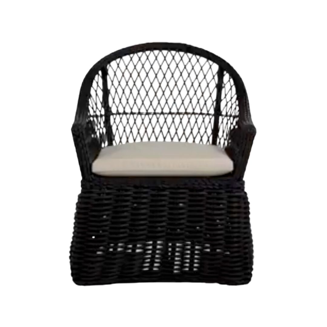 The Soho Wicker Armchair captures the relaxed nature of outdoor living with the organic texture of its woven wicker. Featuring a bohemian-inspired design crafted from N-dura™ resin wicker, this chair makes a stylish statement with an intricately twisted design outlining the frame and an open-diamond weave back and sides. UV- and weather-resistant N-dura™ resin wicker Custom, plush cushion